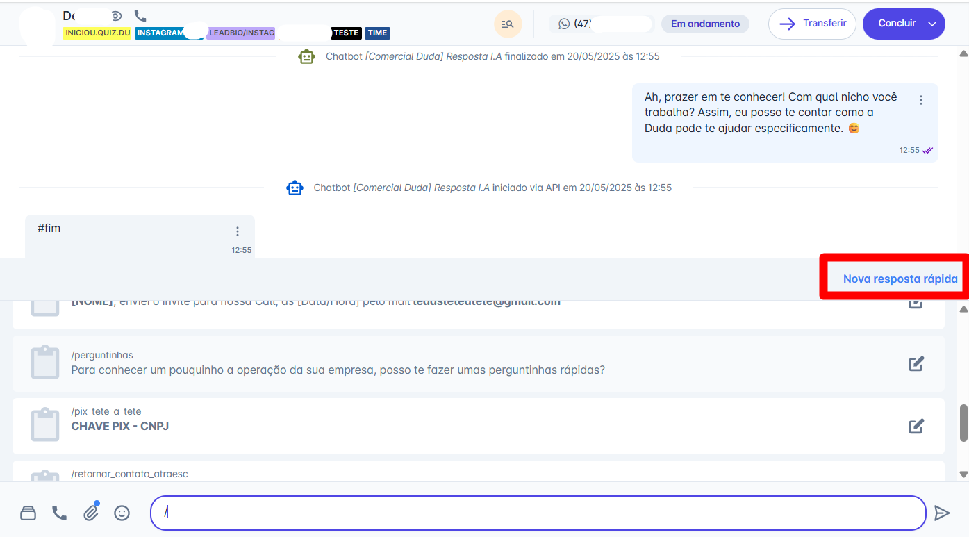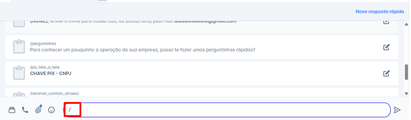 Clicando em nova resposta rápida.
