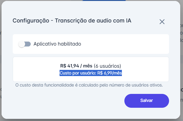 Solicitar para o suporte habilitar a funcionalidade de Transcrição de áudio com IA.