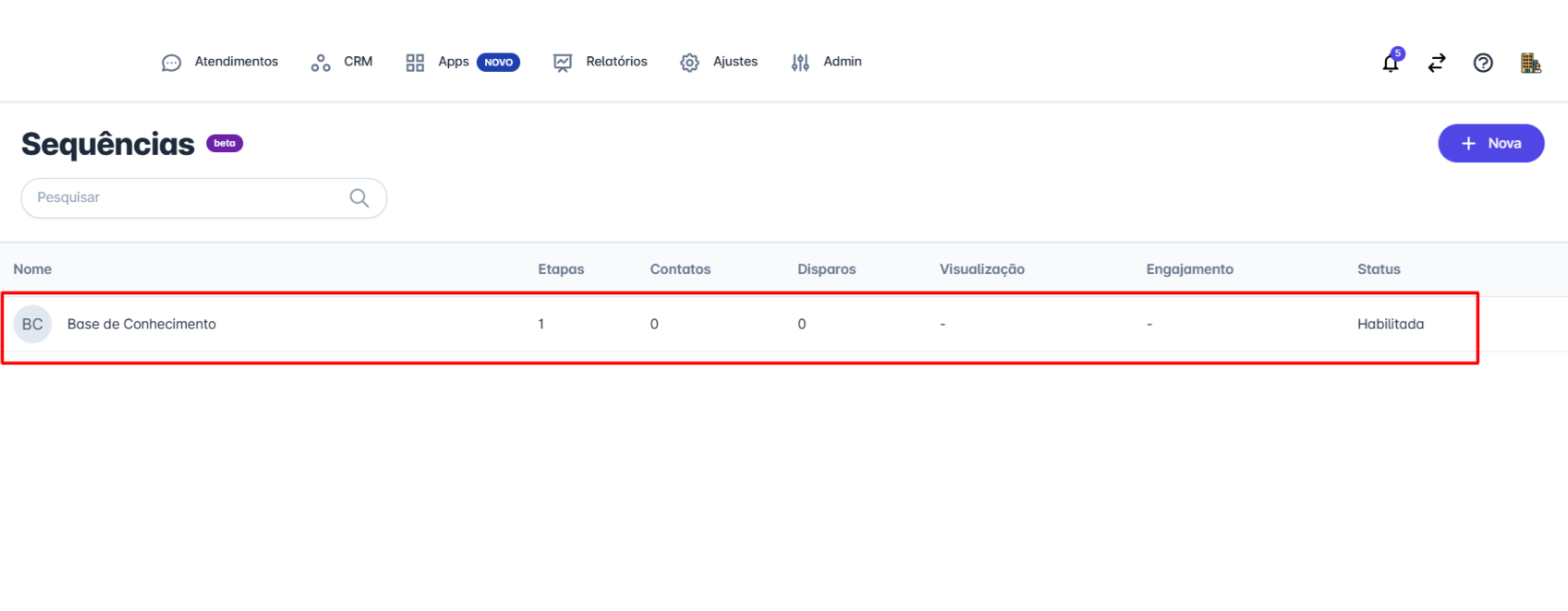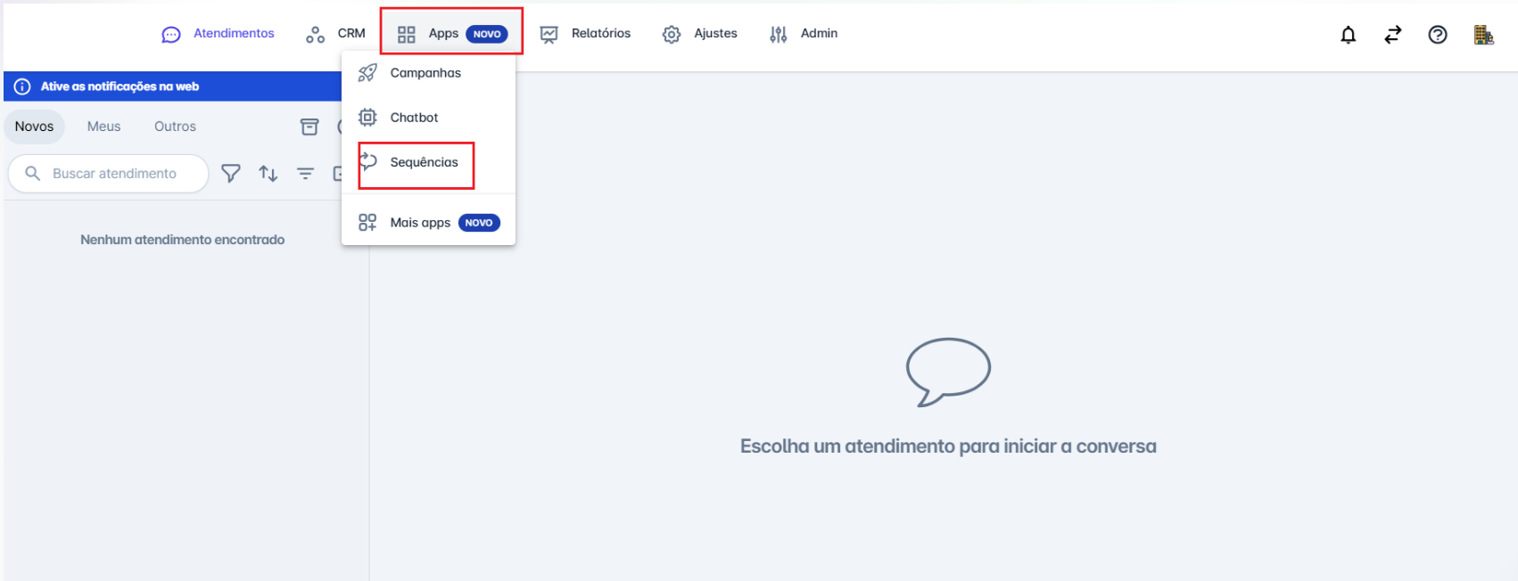 Passo 1: Na aba "Apps", selecione a opção "Sequências"