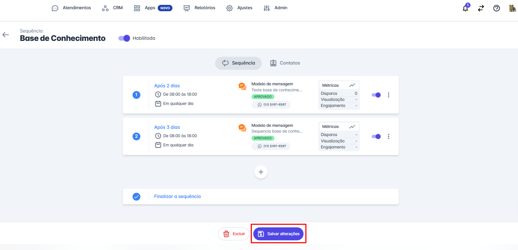 Passo 5: Revise se suas etapas de sequência estão de acordo com sua proposta e, em seguida, clique em "Salvar Alterações".