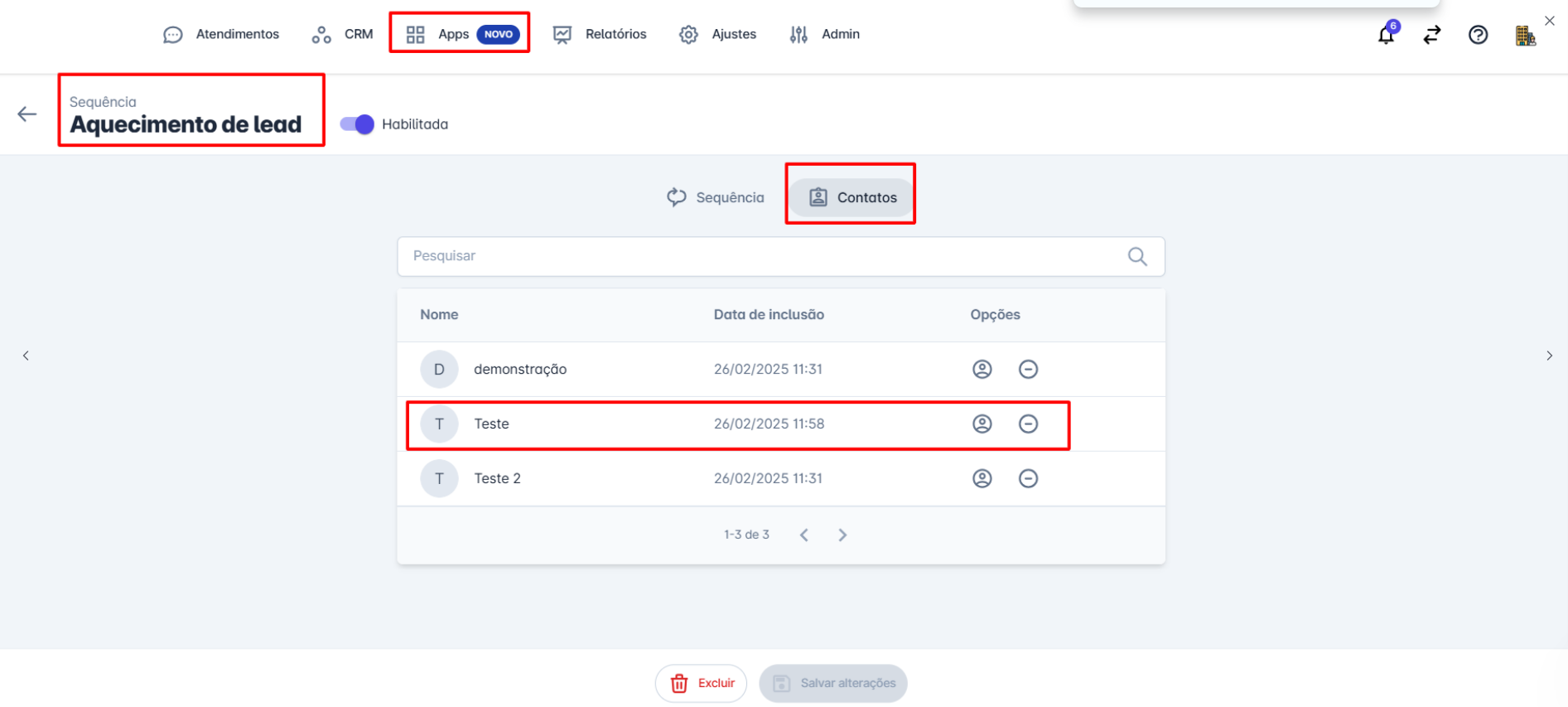 Passo 4: Para confirmar se o contato foi inserido na sequência basta realizar os passos do tutorial “visualizar contatos”