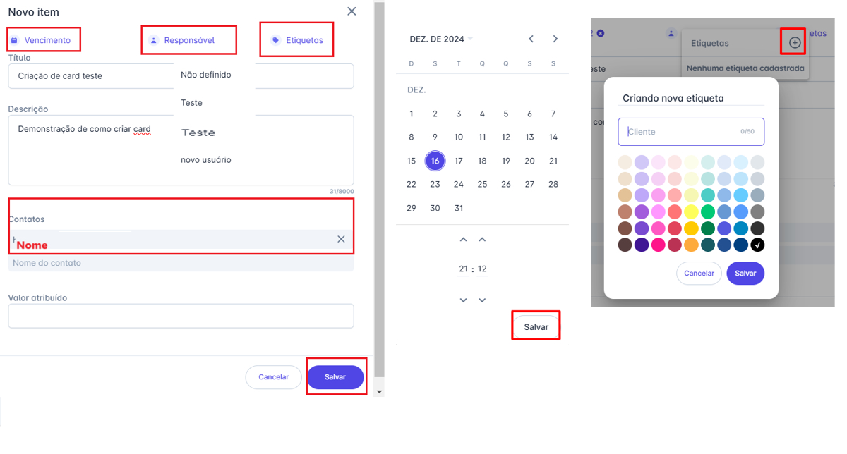 Cadastrar etiquetas que facilitem a classificação desses cards no painel.